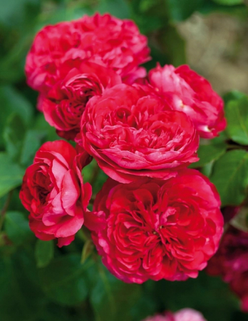 Кусты крепкие со множеством побегов, заканчивающихся соцветиями от 2 до 5 шт. Высота кустов 80-110 см. Цветы из 75-80 лепестков темно-красного цвета, легким ароматом. Листья здоровые, стойкие к заболеваниям.