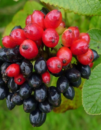 Хороша во время созревания ягод, которые три раз меняют цвет: зеленые, красные и наконец черные. Причем созревание происходит не одномоментно и черно-красные кисти выглядят очень эффектно. Их нужно быстро собрать, так как они сохнут и опадают.