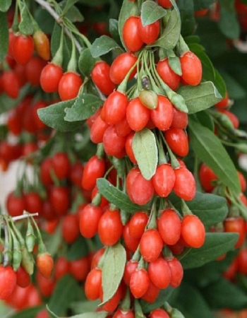 Годжи (дереза обыкновенная) - растение в высоту достигает 2,5 м. Изящные ветки красиво склоняются к земле, среди редких колючек густо располагаются вытянутые зеленые листья. Во время цветения кусты покрыты очаровательными мелкими колокольчатыми цветами с лепестками сиренево-фиолетового цвета и красновато-желтым центром. Ягоды годжи появляются на раскидистых кустах ближе к осени, их окраска варьируется от оранжевой до ало-красной.