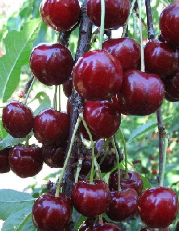 Описание сорта дюка Надежда содержит следующие характеристики плодов: вишни крупные, округлой формы, слегка сплюснутые по бокам. При размере плода 2,3–2,5 см его масса составляет 5,7–5,9 гКосточка небольшая, у хорошо созревших ягод легко отделяется от мякоти.Кожица плотная, окрашена в темно-красный цвет. Мякоть такого же оттенка, среднеплотная, однородной консистенции. На срезе выделяется красный сок.Оценка вкуса по результатам дегустации – 4,5 балла. Ягода сладкая, с небольшой кислинкой, терпкость отсутствует.