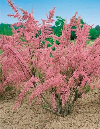 В цветках (диаметром до 5 мм) 4-5 лепестков, 4-5 тычинок с розовато-фиолетовыми пыльниками. Ярко-розовые нарядные соцветия вырастают длиной до 7 см.