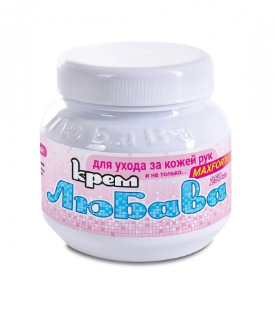 Крем «Любава MAXFORTE» – Питает и увлажняет кожу, омолаживает, разглаживает, устраняет сухость и шелушение, делает кожу бархатистой и нежной. В состав входят 5 натуральных масел: масло ши, оливковое, подсолнечное, кокосовое, виноградное. 4 натуральных экстракта: ромашки, конского каштана, свеклы, календулы.