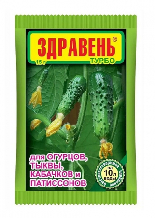 Здравень Турбо для огурцов, тыквы, кабачков и патиссонов ускоряет сроки созревания урожая, увеличивает число завязей и зеленцов, значительно поднимает урожайность.