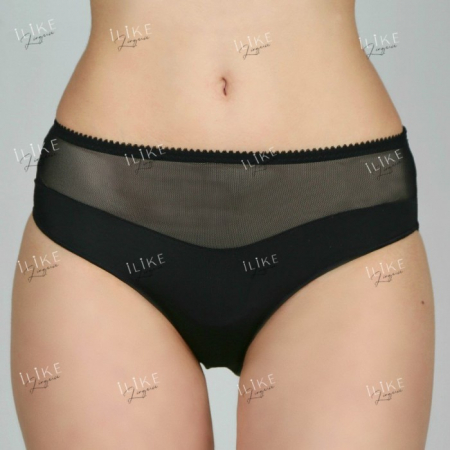 Трусы-слип с отделкой сеткой, в больших размерах - высокая посадка.