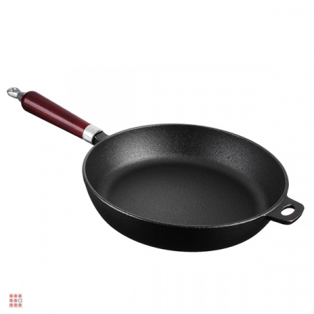 Сковорода диаметром 26 см с деревянной ручкой, подходит для использования на всех видах плит, включая индукцию.