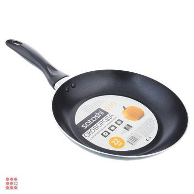 Сковорода диаметром 28 см из штампованного алюминия с 2-х слойным антипригарным покрытием черного цвета, с бакелитовой черной ручкой и однослойным дном - подходит для всех типов плит, кроме индукции.