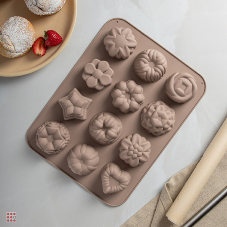 Форма для выпечки 12 ячеек 33x25х3,5см "Цветы", силикон