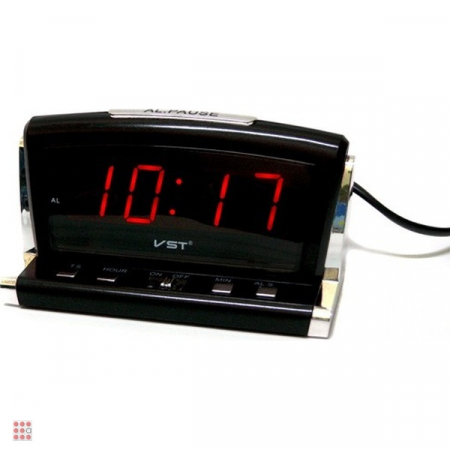 Настольные электронные сетевые часы-будильник. Цвет индикации красный