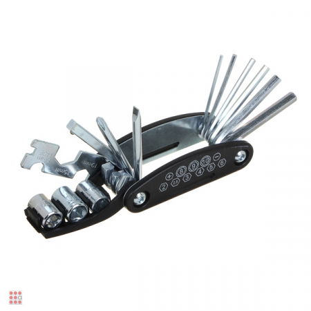 Набор ключей 13 предметов в одном для велосипеда. Многофункциональный, надежный набор, отличается компактностью. Станет незаменимым не только при мелком в дороге, но и при стационарном серьезном ремонте. Этот незаменимый ключ мы очень рекомендуем иметь при себе всем байкерам, велосипедистам в длительных путешествиях. Комплект компактен, не займет много места.
