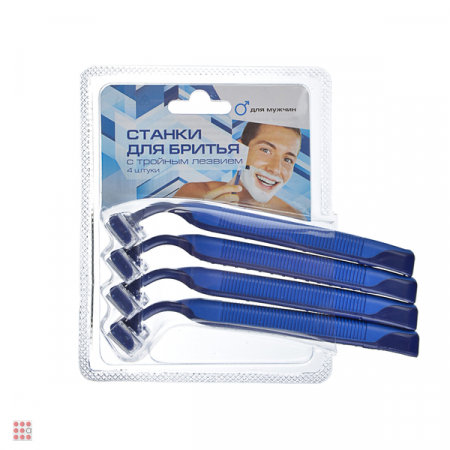 Станки для бритья с тройным лезвием 4шт, силикон, пластик