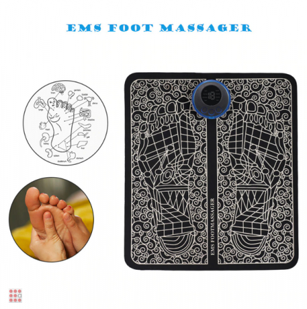 Массажный коврик предназначен для массажа стопы в точечной основе. Массажер состоит из коврика двумя кнопками, в эти кнопки вставиться пульт управление. Пульт управление работает без соединение к электричеству. Для того чтобы работал пульт, необходимо заранее зарядить через кабель. Тип соединение USB-micro. Массажный коврик избавит от болей в ступнях, снимает напряжение мышц после спорта, улучшает кровообращение. Также через 15 минут автоматически отключается . Имеются 6 режимов массажа , на основе каждого режима массажер способен на умный захват акупунктурных точек, мульти частотный массаж, биоэлектрический массаж.