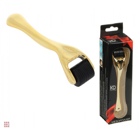Мезороллер для лица ЮL, пластик, сталь, 13см, иглы 0,5мм, золото