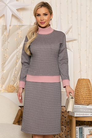 Комплект из жаккардового трикотажа из джемпера и юбки. Джемпер свободного силуэта,горловина,манжеты и пояс-вискозная трикотажная рибана.Юбка А-образного силуэта с эластичной резиной по поясу.