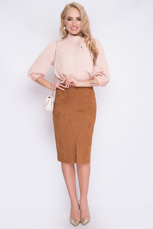 Юбка из искусственной замши,по переду разрез.Пояс на резине.