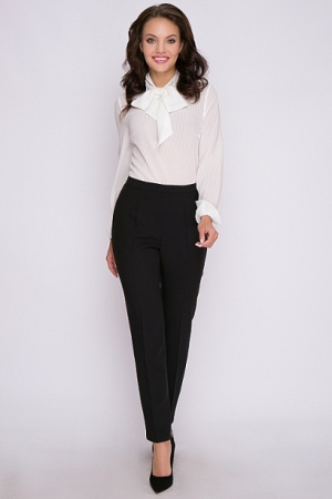 Брюки из  костюмной ткани прямого силуэта,со стрелками,с высокой посадкой,на притачном поясе,застегивающимся на пуговицу.