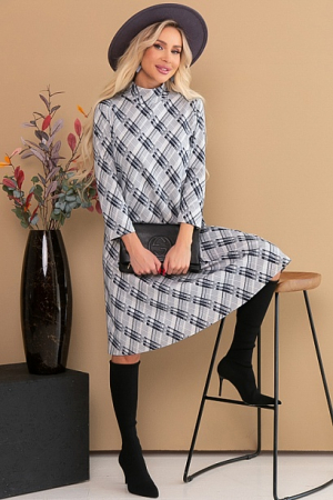 Платье трапеция из трикотажного полотна джерси в клетку,воротник стойка с застежкой на петли и пуговицы сзади.