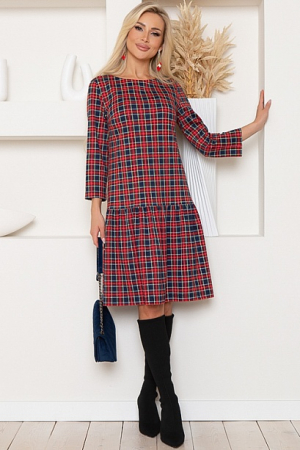 Платье из трикотажного полотна джерси свободного А-образного силуэта с притачным воланом по низу.