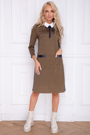 Платье трапецевидного силуэта из трикотажного полотна в клеточку,дополнено текстильным воротником.