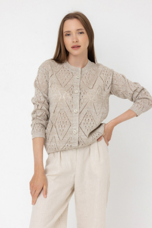 Рукав приспущенный длинный. По низу жакета и по низу рукава резинка.