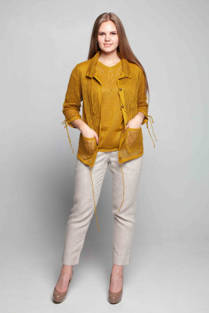 Жакет изо льна ажурный, прямой силуэт.