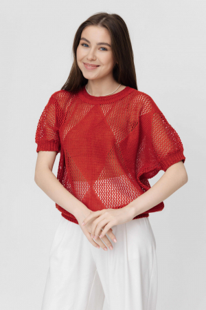 Джемпер повседневный 100% лен, ажурный, свободного кроя, прямого силуэта.