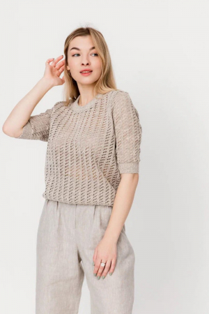 Джемпер 100% лен, силуэт прямой, рукав приспущенный.