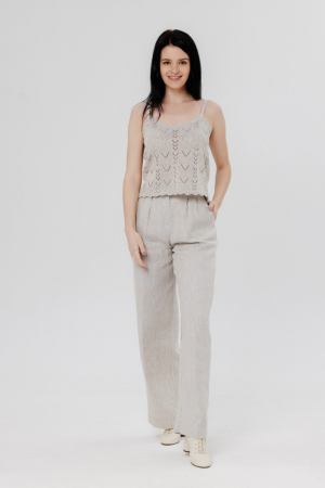 Топ 100% лен, силуэт прямой, ажурный на брительках.