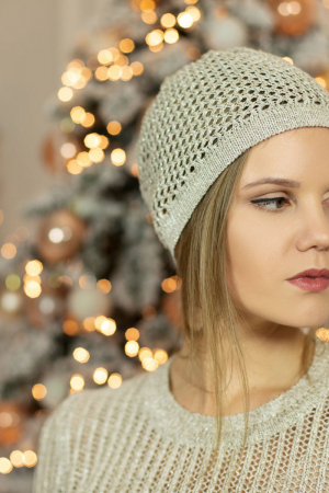 Шапочка лен 95%, люрекс 5%, ажур сетка.
