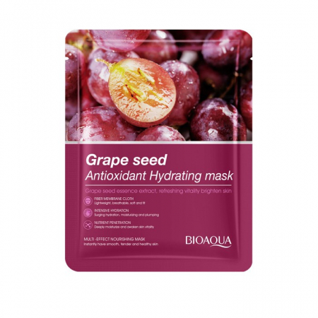 Маска с экстрактом винограда, который содержит большое количество полифенолов, помогает активно бороться со свободными радикалами и тем самым замедляет процесс старения кожи.