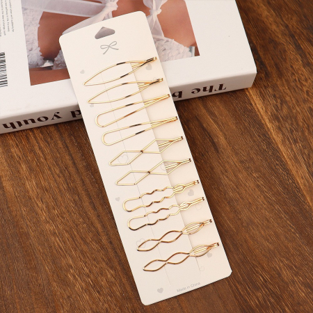Комплект включает 10 стильных заколок, которые станут идеальным дополнением к любому образу.