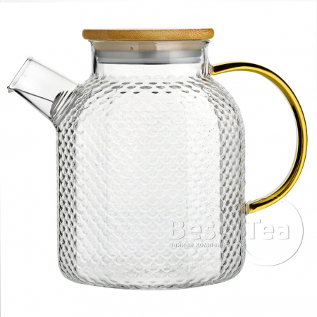Чайник стеклянный с желтой ручкой и бамбуковой крышкой 1600 мл