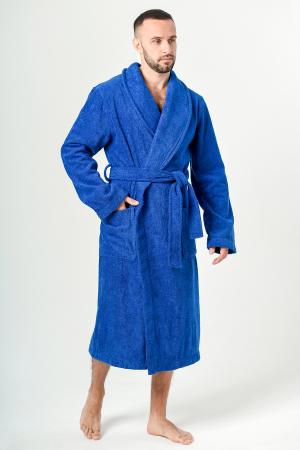 Халат выполнен из 100% хлопчатобумажного двухстороннего петельчатого полотна – «махра».