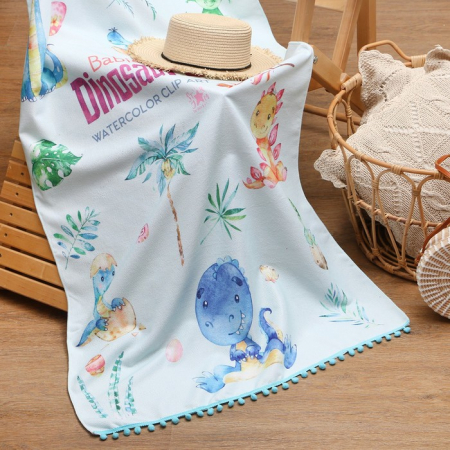 Полотенце пляжное Этель "Динозаврики" 75*140 см, микрофибра, 100% п/э, 230 гр/м2 (арт. 7696189)