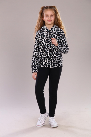 Детская куртка выполнена из полотна "велсофт". Куртка прямого покроя на молнии, с капюшоном, рукав на манжете, низ куртки на поясе, в боковых швах находятся карманы, на шнур капюшона, в качестве декоративного элемента, нашиты бомбошки.