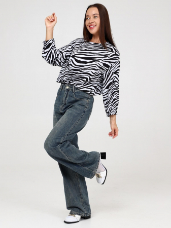 Женская блузка из штапеля прямого силуэта с круглым вырезом горловины под окантовку. Спущенное плечо, рукав втачной 7/8. Низ рукава - на резинке.