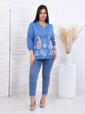 Легкая и нежная женская рубашка прямого силуэта, классического покроя. Рукав 3/4, низ рукава на резинке. Уникальный крой подходит на любой тип фигуры, выгодно подчеркивает достоинства и скрывает недостатки. Хотите выглядеть неотразимо - просто наденьте эту рубашку!
