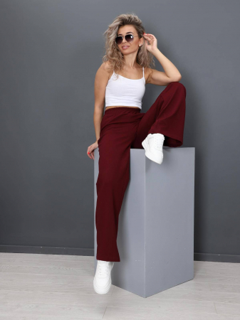Брюки женские из футера с лайкрой на резинке, прямые, широкие от бедра. С высокой посадкой, с карманами.