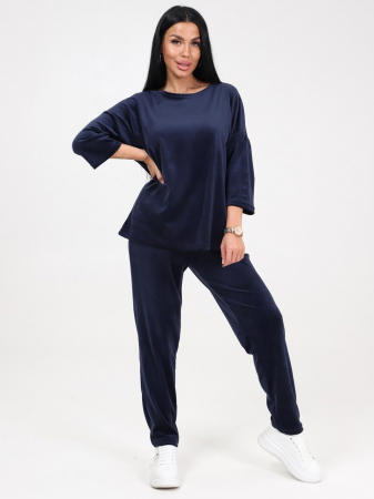 Женский трикотажный костюм состоит из кофты и брюк. Кофта прямого силуэта со спущенной линией плеча. Рукав 3/4. Брюки с карманами в боковых швах, верх на эластичной тесьме.