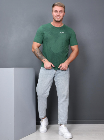 Мужская футболка выполнена их трикотажного полотна "кулирка". Футболка полу прилегающего силуэта, с рукавом, горловина с круглым вырезом, обработанным бейкой. Передняя часть футболки декорирована принтом.