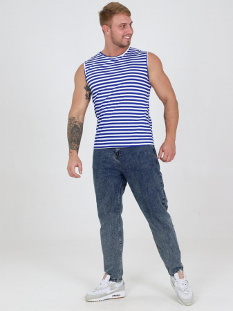 Комфортная повседневная мужская майка, прямого силуэта.  Майка выполнена из хлопкового трикотажа. Горловина округлой формы. Отличный вариант для повседневного гардероба.