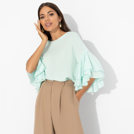 Блуза из вискозы с воланами, Молниеносная влюбленность (mint)