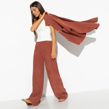 Терракотовый цвет — это не просто тренд, это настоящий прорыв в мире моды. Его теплые оттенки добавляют яркости и свежести в любой образ, создавая ощущение уюта и гармонии. Оптовая закупка брюк такого цвета позволит вам существенно расширить ассортимент вашего магазина, предложив клиентам стильную и актуальную новинку. Эти брюки идеально подойдут для людей, стремящихся к переменам и новым ощущениям. Они вдохновляют на создание ярких и запоминающихся образов, которые помогут выделиться из толпы и выразить свою индивидуальность.