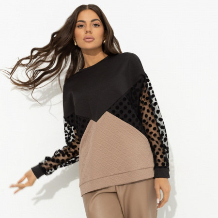 Свитшот комбинированный «Любимый образ (black woman)» — это идеальное сочетание стиля и комфорта для современных женщин, которые ценят каждую деталь в своем гардеробе. Этот женский свитшот выполнен из нескольких видов ткани, включая «Джерси», трикотаж Жаккард и сетку Флок, что придаёт ему уникальную текстуру и мягкость. Прозрачные рукава добавляют загадочности и легкости, превращая свитшот в подходящий вариант как для повседневного использования, так и для вечерних выходов. Покупка данного свитшота оптом станет отличным решением для магазинов, стремящихся предложить своим клиентам лучшее.