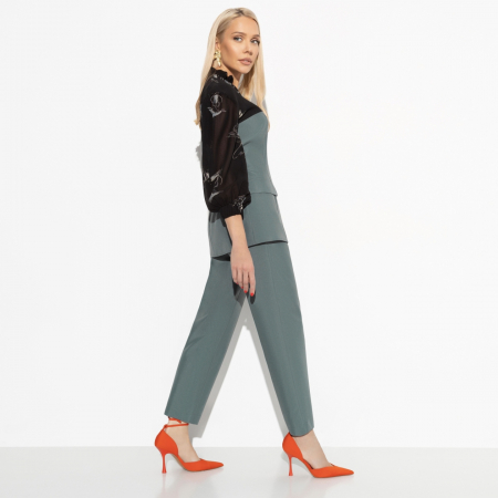 Испытываете ли вы необходимость обновить гардероб для рабочей недели или особых случаев? Оптовая покупка брючного костюма от CHARUTTI станет вашим спасением! Этот костюм создан для тех, кто ценит как удобство, так и стиль. Используемая ткань – габардин и шифон – обеспечивает непревзойденную элегантность и долговечность. Комбинация укороченных брюк и приталенного верха создает эффект идеального лицевого силуэта. Закажите оптом, чтобы не беспокоиться о том, что надеть на любую встречу или праздник.