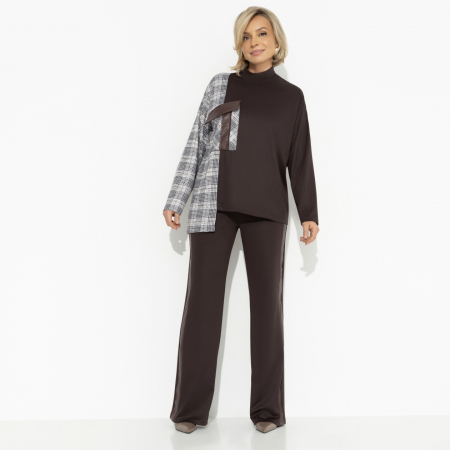 Брючный костюм с накладным карманом «Современная утонченность (new, 2 в 1)» — это воплощение идеального сочетания стиля и комфорта, что делает его незаменимым элементом гардероба каждой модницы. Благодаря использованию трикотажа «милано», трикотажа «жаккард» и «экокожи», этот костюм обеспечивает не только эстетическое удовольствие, но и комфорт в носке. Ассиметричный крой джемпера, свободная посадка брюк и эластичный пояс гарантируют удобство и свободу движений. Это делает брючный женский костюм идеальным выбором как для повседневных прогулок, так и для вечерних выходов. Покупая этот костюм оптом, вы получаете возможность не только обновить гардероб, но и разнообразить свой стиль без лишних затрат.