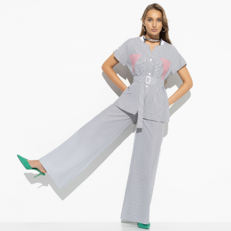 Брючный костюм «Раскрываю таланты» – это не просто одежда, это ваше секретное оружие для создания впечатляющего образа. Изготовленный из ткани поплин тиси полоска, этот костюм сочетает в себе элегантность и комфорт, делая его идеальным выбором для деловых встреч и светских мероприятий. Представьте, как вы входите в комнату в этом костюме, притягивая взгляды окружающих. Его уникальный крой с поясом подчеркнёт вашу фигуру и добавит нотку утончённости в ваш стиль. Если вы задумываетесь о покупке оптом, этот костюм станет идеальным решением для создания единого корпоративного стиля или для розничной продажи в вашем бутике.