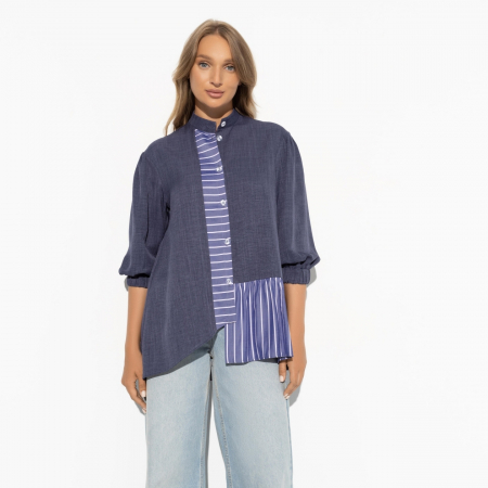 Рубашка «В мире роскоши (blue)» — это выбор для тех, кто ценит стиль и качество. Свободный крой и асимметричный край придают этой рубашке уникальность и элегантность. В составе ткани «кларис» и «джинс полоска» 65% полиэстера, 20% хлопка и 15% вискозы, что обеспечивает комфорт и долговечность. Подол рубашки украшен воланом из контрастной ткани, добавляя образу изюминку, а рукава три четверти на широкой резинке обеспечивают удобство и стиль. Мы предлагаем эту рубашку оптом, чтобы вы могли пополнить свой ассортимент качественным и модным товаром.