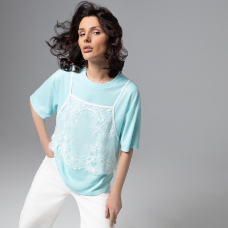 Футболка оверсайз, Модный тандем (мятный 2 в 1)