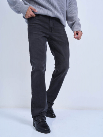 Мужские классические джинсы с пятью карманами. Посадка Regular fit (полуоблегающие по бедру), высокая талия, немного заужены к низу. Застежка на молнии.заужены к низу. Застежка на молнии. Выполнены из слабоэластичной ткани denim comfort stretch, цвет ткани Black/Black (лицевая и изнаночная стороны ткани черные). Средняя стирка с потёртостями и "усами" спереди и потёртостями сзади. Параметры указаны для размера 32. Длина внутреннего шва - 86,0 см.