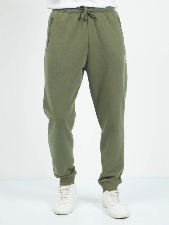 Классические трикотажные мужские брюки из хлопкового полотна с добавлением полиэстера. Спереди вместительные карманы на молнии. По низу штанин эластичные манжеты. Широкий пояс на резинке. В поясе шнур.